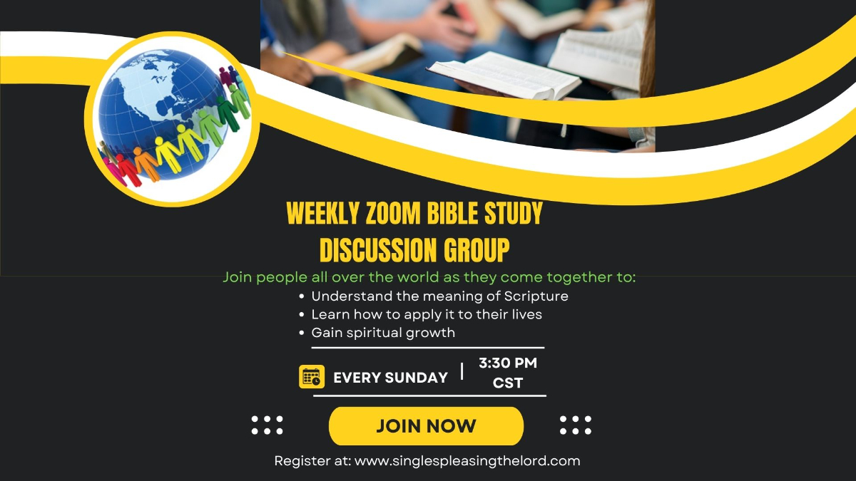 Debbie and Pastor J lead this weekly bible study discussion group. It is open to anyone single or married and participants come from all over the world. This 90 minutes includes dynamic teaching from the Word of God, lively discussions that allow time for questions and answers, prayer, and an opportunity to meet and greet others and develop a community of support from believers. This group is highly recommended for those that lack a community of Christian believers and you want some extra exposure to the Word of God to grow.